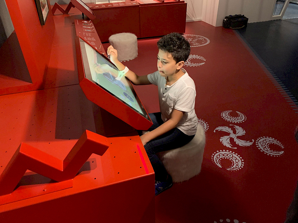 « Lance-toi dans une aventure fabuleuse où les œuvres vous révéleront les secrets de leurs costumes ! » Tout le monde ne s’habille pas pareil et ce n’est pas qu’une question de mode ! Un habit, un costume ou des accessoires nous renseignent toujours sur celui qui les porte. Les artistes le savent bien et ils ont habillé avec beaucoup de soin les personnages et modèles présents dans leurs oeuvres. La médiation de l’exposition est « gamifiée » grâce à la résolution d’une série de missions axées sur la découverte des œuvres. Les jeux sont construits pour forcer le regard des enfants en suscitant des allers retours entre les écrans et les œuvres. Les petits visiteurs observent les oeuvres originales pour résoudre les énigmes et collectent des accessoires pour créer leurs propres styles. Ils partent à la rencontre des personnages qui partageront leurs plus beaux costumes. Une fois cette mission accomplie, ils peuvent grimper une structure filaire et partir à la découverte d’autres costumes ou prendre un repos bien mérité dans un nouvel espace lecture.