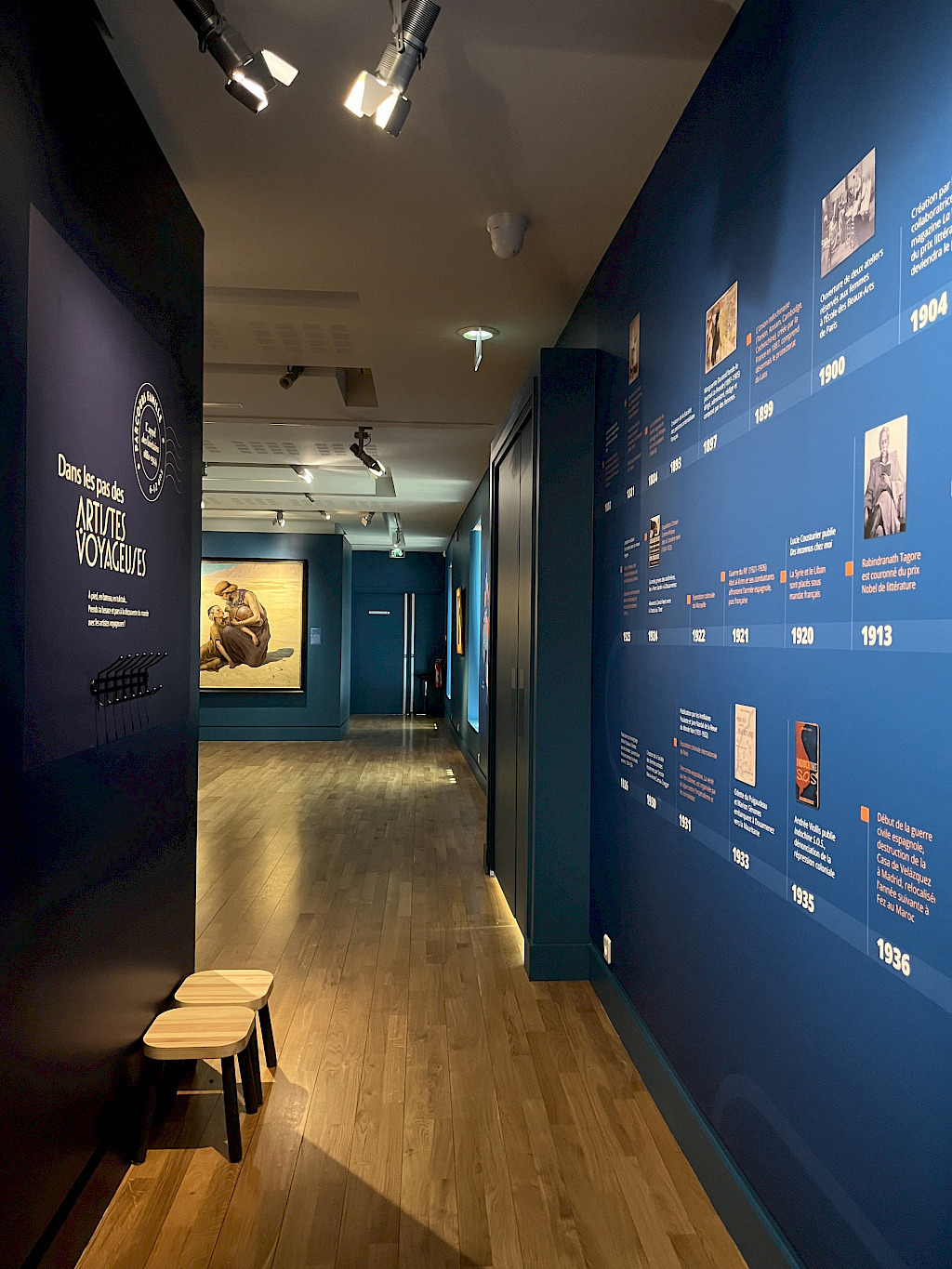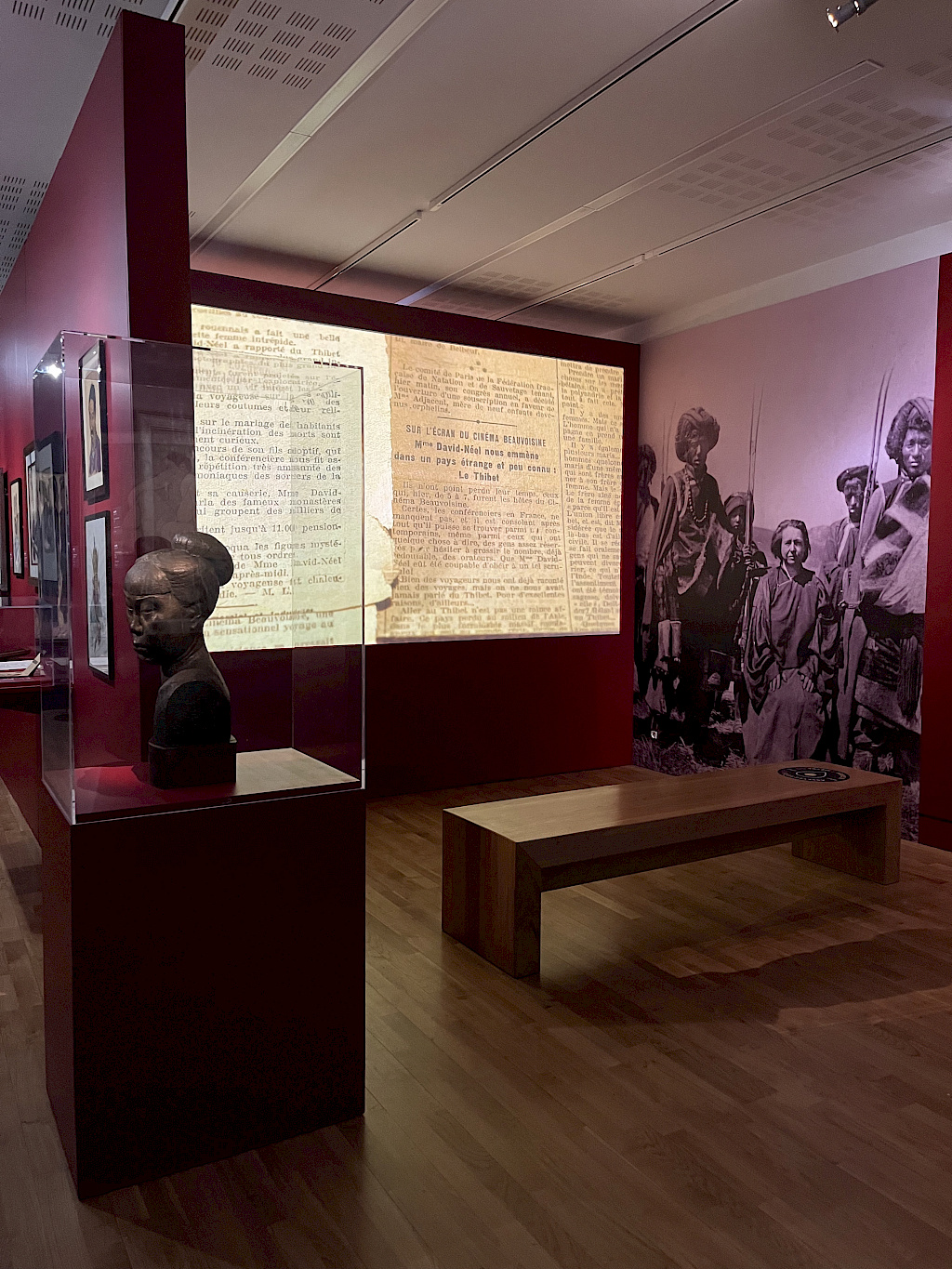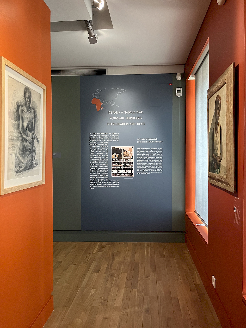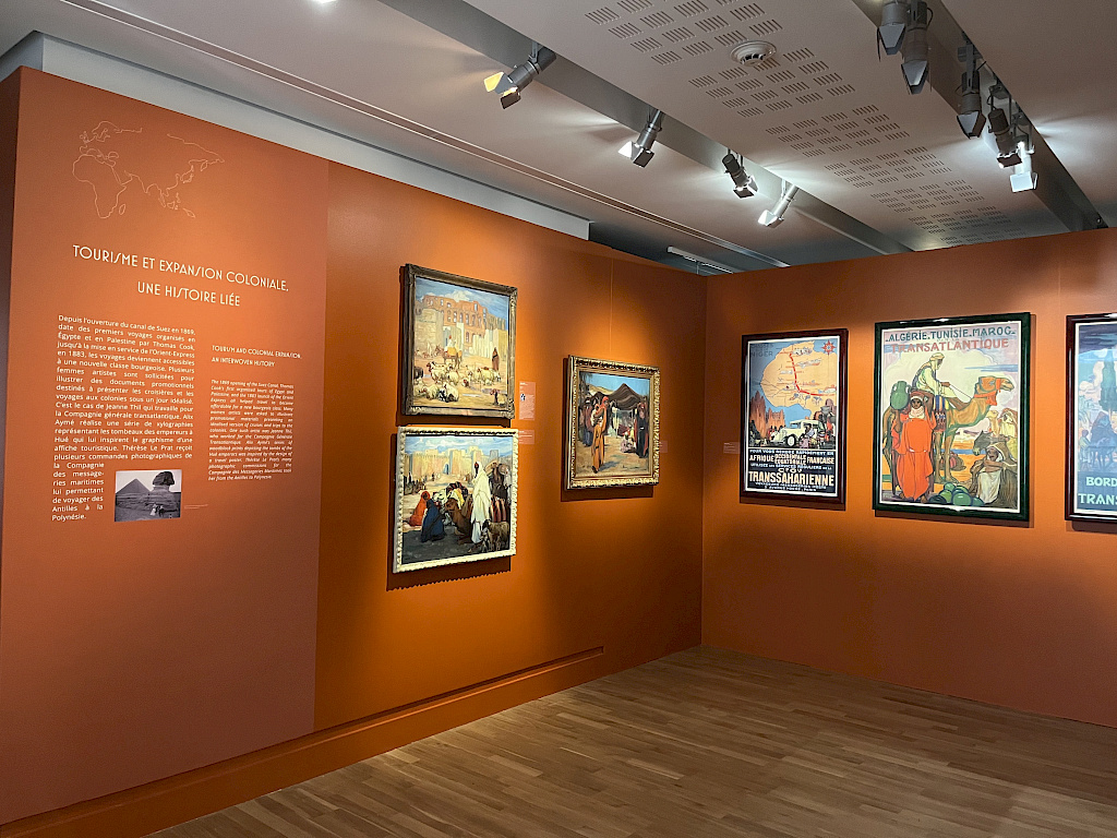 Si la fin du XIXe est marqué par un renouvellement d’intérêt pour l’orientalisme, à partir des années vingt, ce sont les territoires de « la plus grande France » qui invitent de nombreuses artistes aux voyages, loin du monde occidental, de l’Afrique équatoriale à Madagascar, jusqu’à la péninsule indochinoise et au-delà. C’est le cas de Marcelle Ackein, Alix Aymé, Monique Cras, Marthe Flandrin, Anna Quinquaud, Jane Tercafs, Jeanne Thil. Certaines se risquent loin des réseaux institutionnels jusqu’au Tibet, comme Alexandra David-Néel et Léa Lafugie. La question de la rencontre avec l’autre et de sa représentation se déploie dans le parcours de l’exposition par la diversité des approches et des moyens plastiques. Une riche documentation, sous différents formats permet d’appréhender le contexte culturel et sociétal de ces voyageuses, durant cette période de la Troisième République marquée à la fois par les premiers mouvements féministes et l’expansion coloniale.