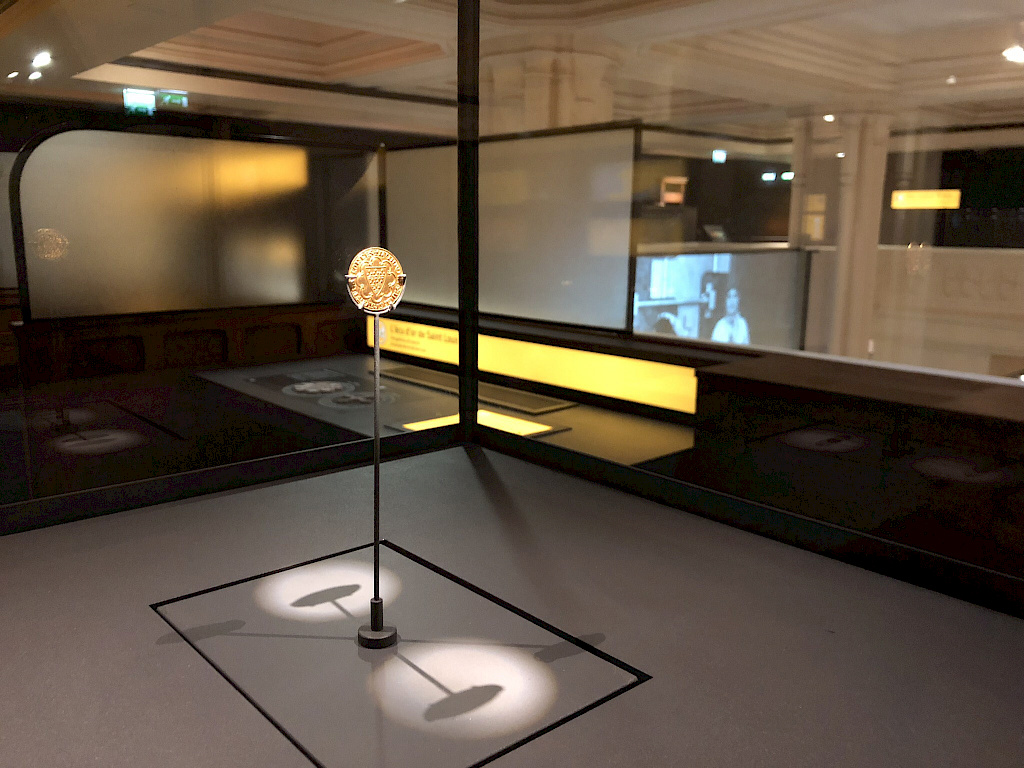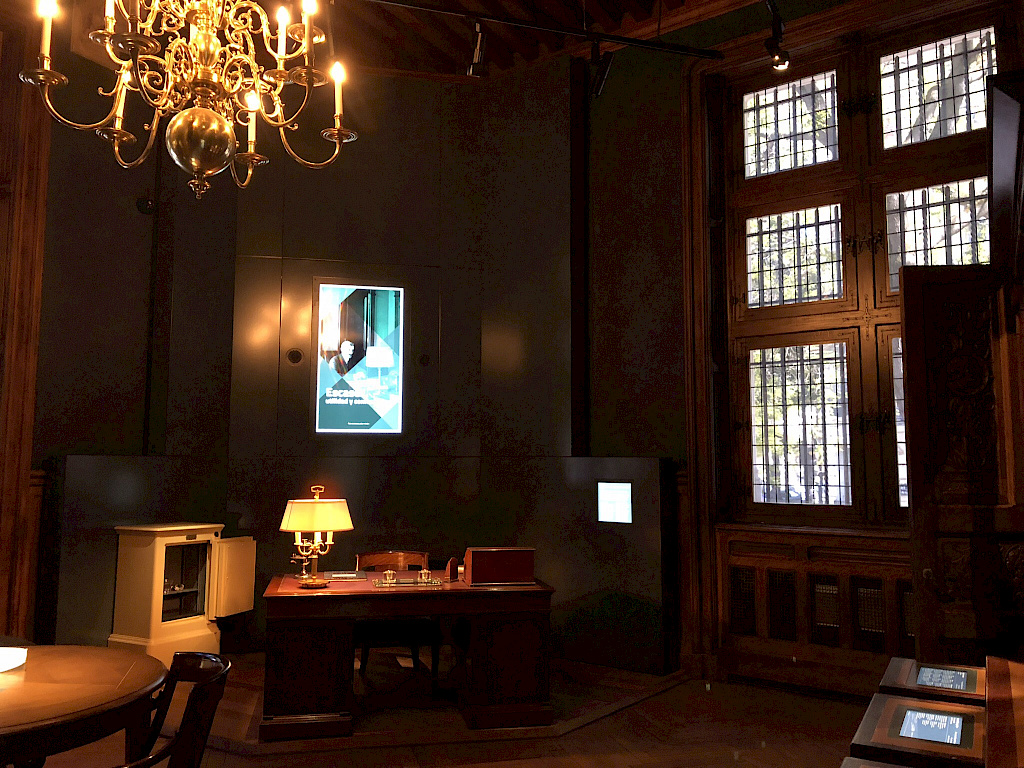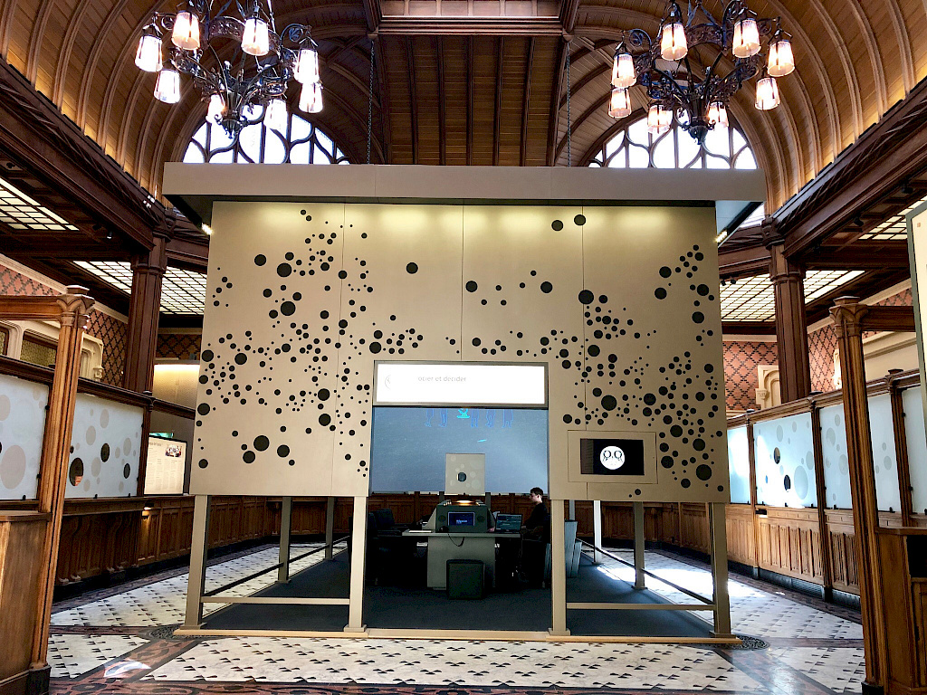 Comme en d’autres espaces patrimoniaux, nous avons ici pensé une scénographie moderne intégrée et soumise aux exigences du site (esthétiques, techniques, culturelles, historiques…). Que cela soit dans le Hall Defrasse, où l’on recevait la clientèle au temps de la succursale ou encore dans l’incroyable salle des coffres ceinte de douves, dans laquelle nous transformons les armoires fortes en vitrine, chaque élément et le moindre détail a été réfléchi, conçu et réalisé en étroite collaboration avec les architectes et les responsables des monuments historiques.