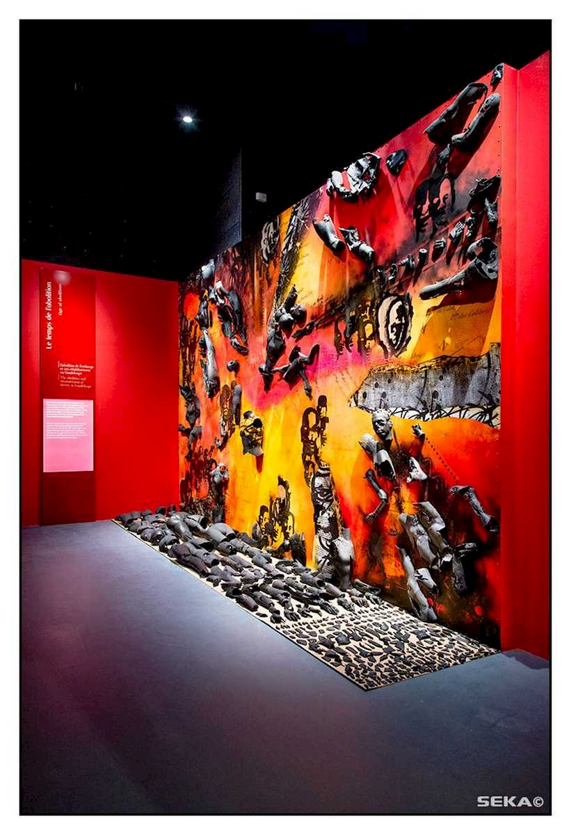 Parmi les « surprises scénographiques » du parcours, nous invitons les visiteurs à passer par les cales virtuelles d’un bateau; Ils en ressortent éblouis par un torrent de lumière, à la manière des esclaves africains débarquant sur les plages des Caraïbes. L’exposition évoque également le rôle des marchands négriers africains, sans qui les Européens n’auraient rien pu faire. Dans une reproduction libre d’une salle de la Sorbonne nous évoquons également le premier congrès des Écrivains et Artistes noirs, en 1956. Pour finir le Mémorial rend hommage aux héros de la résistance à l’esclavage, aux différentes formes d’insoumissions en évoquant les formes contemporaines.
